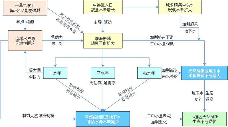 揭示的西北内陆流域下游区天然绿洲退变形成与演变机制