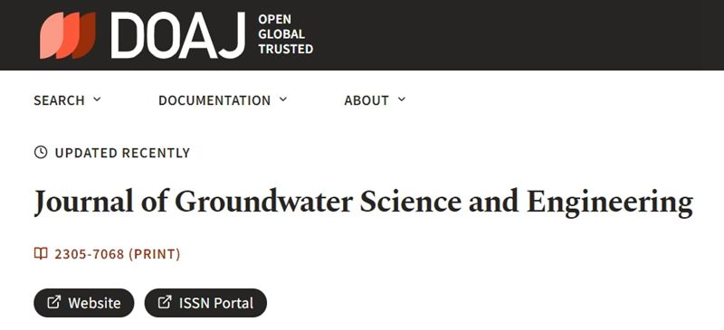 《Journal of Groundwater Science and Engineering》(地下水科学与工程 JGSE)是由中国地质科学院水文地质环境地质研究所、中国地质学会水文地质专业委员会、国际水文地质学家协会(IAH)中国国家委员会联合主办的国际期刊,创刊于2013年,英文季刊。近日获全球最具影响力的开放存取期刊目录—DOAJ数据库收录!