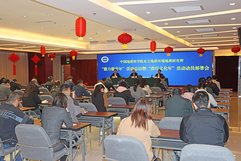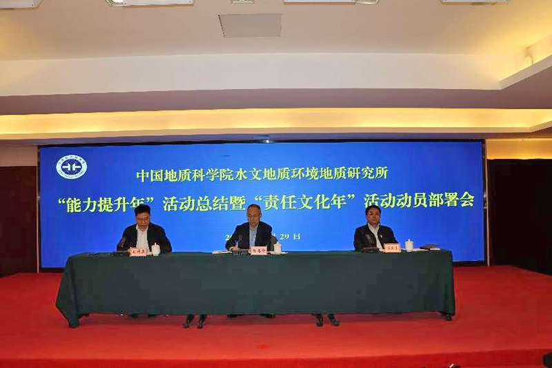2024年3月29日,中国地质科学院水文地质环境地质研究所召开“能力提升年”活动总结暨“责任文化年”活动动员部署会。会议以习近平新时代中国特色社会主义思想为指导,深入学习习近平文化思想,贯彻党的二十大和二十届二中全会精神,全面总结2022年、2023年作风提升、能力提升成效和经验,以“铸魂增智、正风促干、敢抓会抓、能干肯干、兴所有我、担当奉献”的鲜明导向,安排部署2024年“责任文化年”活动各项工作。所长侯春堂同志作“能力提升年”总结和“责任文化年”动员讲话,党委书记冯安生同志宣读《“责任文化年”活动实施方案》,副所长刘锋英同志主持会议。