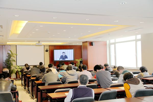水环所所长、党委书记石建省,副所长张永波、李援生,纪委书记张民福,处级及高工以上干部在创新基地八楼视频会议室认真收看学习。