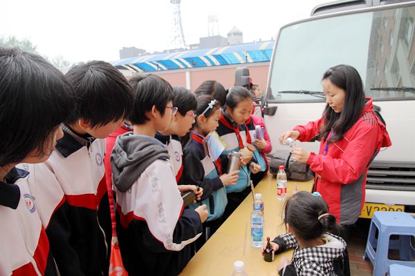 广大学生排队参观水环所环境应急监测系统