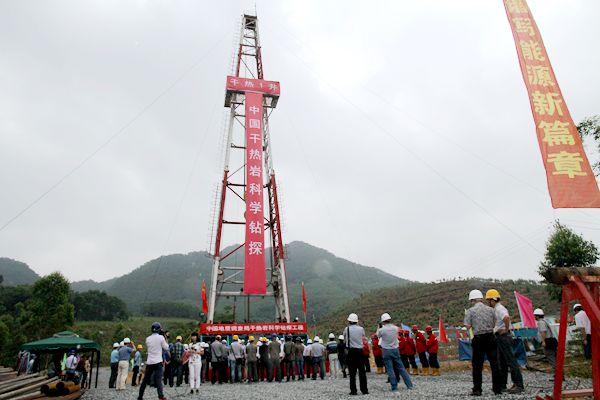 王学龙强调,国土资源部中国地质调查局高度重视地热资源勘查开发,先后完成31个省会级城市和主要地级城市浅层地温能调查评价,全国地热资源现状调查与区划,以及典型地区高温地热资源调查和干热岩资源潜力评价等,圈定漳州干热岩资源远景区,是其中一项重要成果。实施干热岩勘查开发是一项世界性前沿课题。在东南沿海花岗岩地区实施4000米深钻,具有很强的探索性和挑战性,要发扬“三光荣”、“四特别”精神,努力把漳州干热岩项目做成全国典范,为福建生态文明示范省建设做出贡献,加快推动我国新能源开发利用。