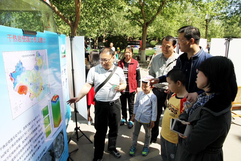 活动现场举办了“节约集约利用资源倡导绿色简约生活-合理开发地下水资源 大力发展清洁能源”主题展览,围绕干热岩资源分布及潜力、浅层地温能开发利用、水热型地热资源开发利用、中国地下水资源现状、过量开采地下水严重后果、河北平原地下水资源量、如何喝上放心水、地质灾害预防、国际合作与交流成果等图板,为广大学生和市民上了一堂生动的科普宣传教育课,提高了资源利用效益的强烈意识。山区地球关键带创新团队成员向广大师生详细介绍国际地学研究前沿热点-地球关键带的发展背景、国内外研究现状,以滦河中下游地球关键带地质调查项目为例,通过丰富图例,向广大市民详细介绍通过地球关键带解决食品安全和气候变化等问题的新途径。国土资源部地下水矿泉水及环境监测中心科研人员现场为市民展示了各种水样测试方法,耐心细致地为大家讲解生活用水常识,引发了社会各界的兴趣。为让更多的人了解地下水科学及水工环地质调查,水环所把国土资源部环境应急监测车开到了活动现场,对环境应急仪器进行展示。