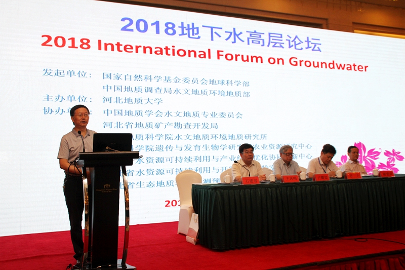 7月9日,由国家自然科学基金委员会地球科学部和自然资源部中国地质调查局水文地质环境地质部共同发起,河北地质大学主办,中国地质学会水文地质专业委员会、河北省地质矿产勘查开发局、中国地质调查局水环所、中国科学院遗传与发育生物学研究所农业资源研究中心、河北省水资源可持续利用与产业结构优化协同创新中心、河北省水资源可持续利用与开发重点实验室、河北省生态地质环境监测预警与地质灾害防治技术研发中心协办的2018地下水高层论坛在石家庄召开。