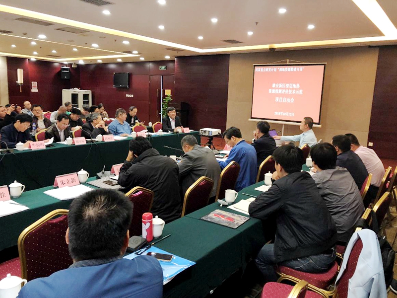 2018年10月12日,由自然资源部中国地质调查局水文地质环境地质研究所牵头承担的国家重点研发计划项目“雄安新区深层地热资源探测评价技术示范”启动会暨课题实施方案论证会在北京召开。自然资源部中国地质调查局科技外事部相关领导到会指导。中国工程院多吉院士、曹耀峰院士、武强院士等10多位咨询专家,各课题承担单位负责人及项目参与单位的40多位代表和技术骨干参加会议。项目启动会由水环所张兆吉副所长主持。