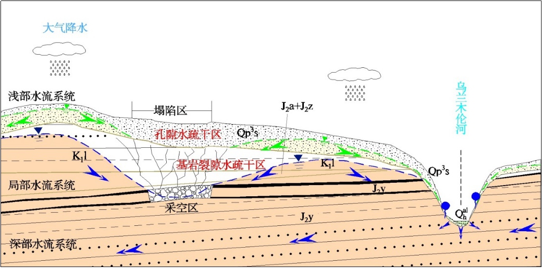 神东基地采煤条件下地下水循环模式图