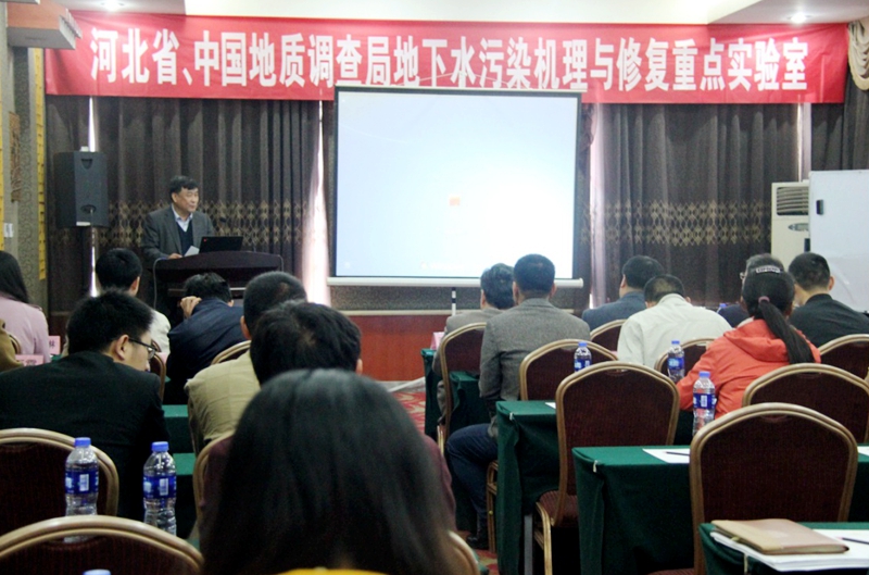 近日,河北省\中国地质调查局地下水污染机理与修复重点实验室2017年度学术委员会会议在石家庄召开。国土资源部实验管理中心张辉旭副主任,中国地质调查局科技与外事部郭文琳到会指导。实验室学术委员会副主任张兆吉研究员,学术委员会委员清华大学李广贺教授、吉林大学赵勇胜教授和北京师范大学丁爱中教授出席会议。会议还特邀北京中地泓科环境科技有限公司总工程师朱远峰研究员,昆明理工大学环境学院院长潘波教授,中国地质大学(武汉)环境学院袁松虎教授,中科院遗传发育所农业资源研究中心李小方研究员等专家出席并作报告。中国地质调查局发展中心战略研究室周平主任与会调研。来自水环所及有关环保科研机构公司的50多人参加会议。