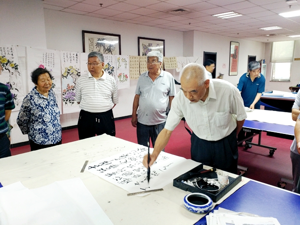 老同志们热情高涨,积极参与,不但带来了自己的精心力作进行展示,并且现场挥毫泼墨,即兴创作丹青墨宝,彼此分享心得。作品取材广泛,形式多样,既有苍劲有力的书法,又有意境悠远山水花鸟画,还有那小巧却精致的篆刻作品等等,充分展现了广大离退休职工良好的精神风貌和高超的文化修养。
