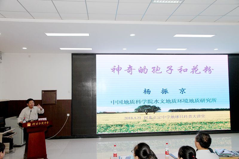科普大讲堂上,俄罗斯自然科学院外籍院士、中国科协科普传播专家、中国地质调查局地热资源调查研究中心副主任、中国地质学会地热专业委员会秘书长、水环所副总工程师王贵玲研究员作了题为《地热能—身边的清洁能源》的报告,中国地质科学院地质研究所王彦斌研究员结合自己4次南极科考经历作了题为《南极—神奇的大陆》的报告,中国地质科学院矿产资源研究所矿床环境评价研究室主任赵元艺研究员作了题为《美丽的北极:矿产与环境》的报告,中国地质科学院水文地质环境地质研究所微体古生物与古生态学科研创新团队学术带头人、中国孢粉学会理事杨振京研究员作了题为《神奇的孢子和花粉》的报告。4位专家深入浅出,生动地讲解了关于地球科学和大自然的奥秘,同学们都聚精会神地听取报告,时而记录,时而被科普专家生动的讲解阵阵欢笑。报告结束后,同学们都很激动的和老师们说这次听报告受益匪浅,而且通过和科学家零距离的沟通,让他们了解了什么是科学家,科学家在做什么,科学家那种为追求科学而放弃一切的精神也鼓舞了他们。其中有同学还说,他曾经想当一名科学家,但是科学家在他的脑海里变得慢慢很模糊,通过今天的活动,他又重新找到了方向,希望能够有一天能够做和4位科学家一样的有志之才。